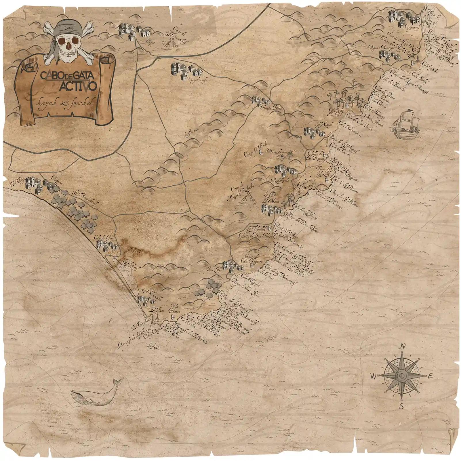 Para moverte con facilidad por el Parque Natural de Cabo de Gata, es fundamental contar con un plano que te ayude a situarte y organizar tu visita. En Cabo de Gata Activo hemos creado un mapa claro y práctico, en el que hemos eliminado la información superflua y destacado únicamente los puntos de interés imprescindibles del parque.